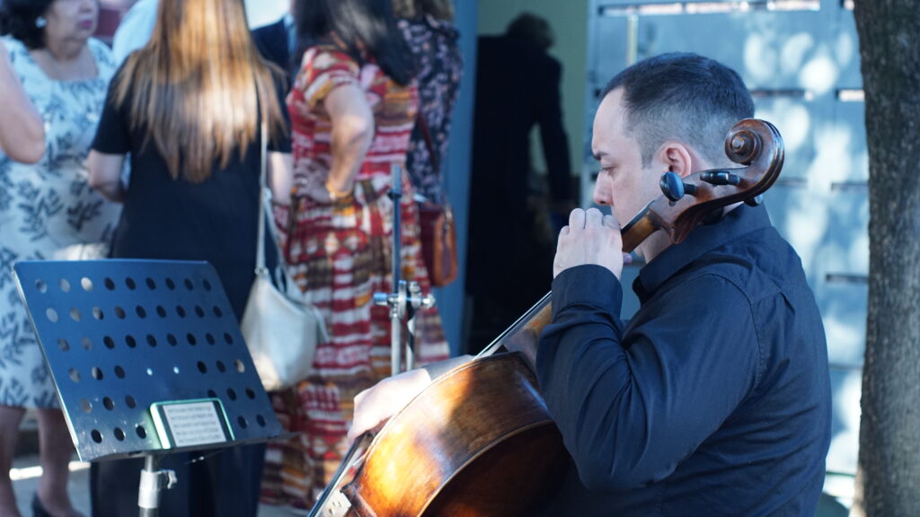 La jornada se disfrutó con intervenciones artísticas: la recepción estuvo a cargo de alumnos de la Licenciatura en Arte Dramático, quienes actuando con mimodramas condujeron a los invitados al auditorio; donde un alumno de la carrera de Música los recibió con una interpretación musical de violonchelo.